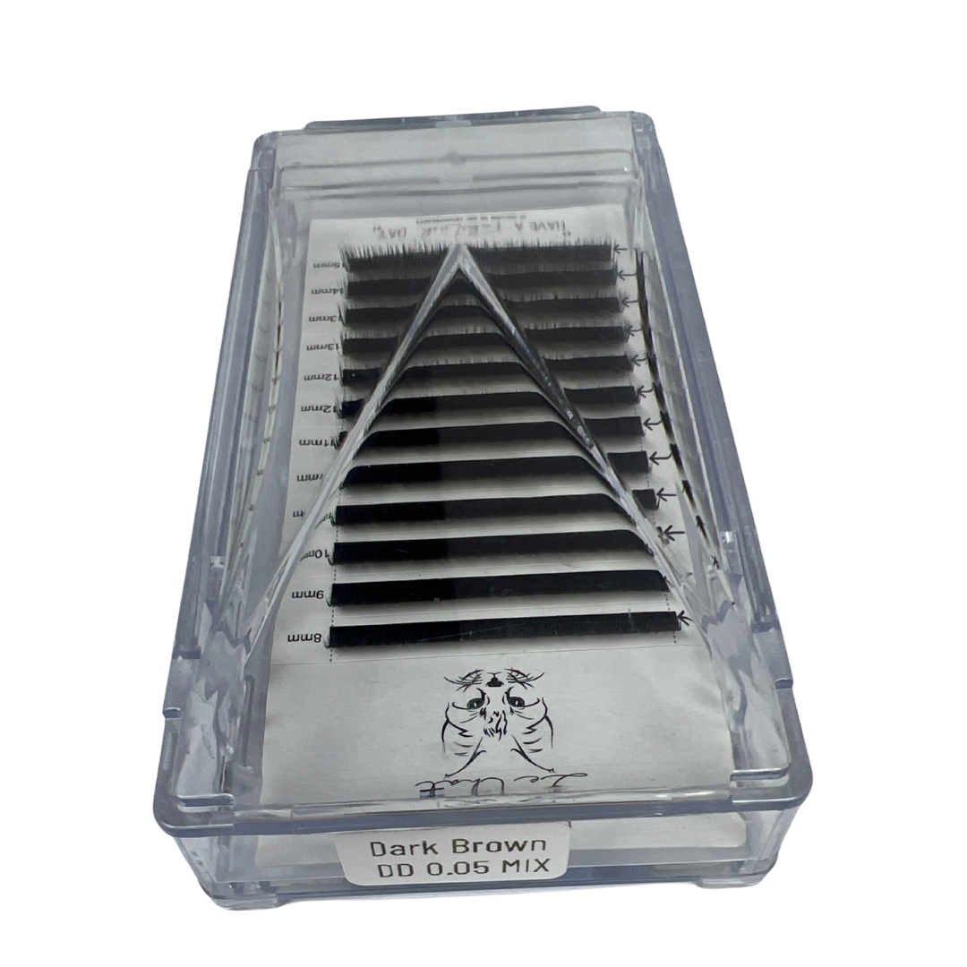 Soft dark-brown DD-curl tray for plush volume with a natural hue.